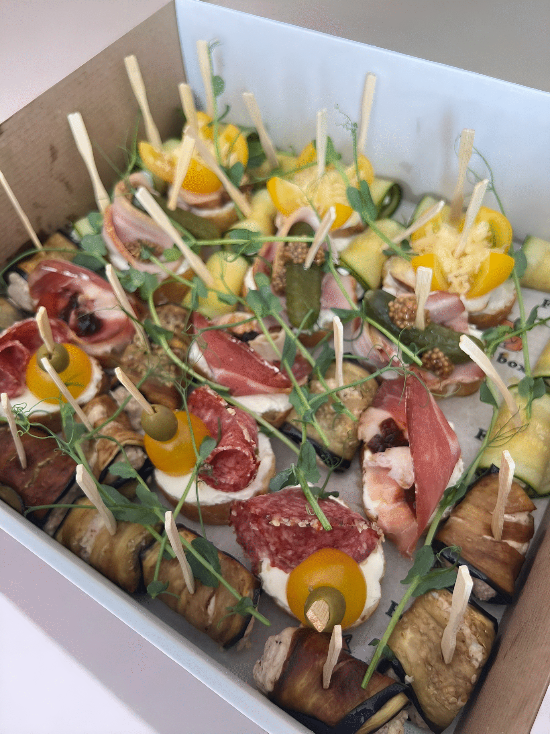 Кростини с сальчичоном ,черри и оливкой -3 шт