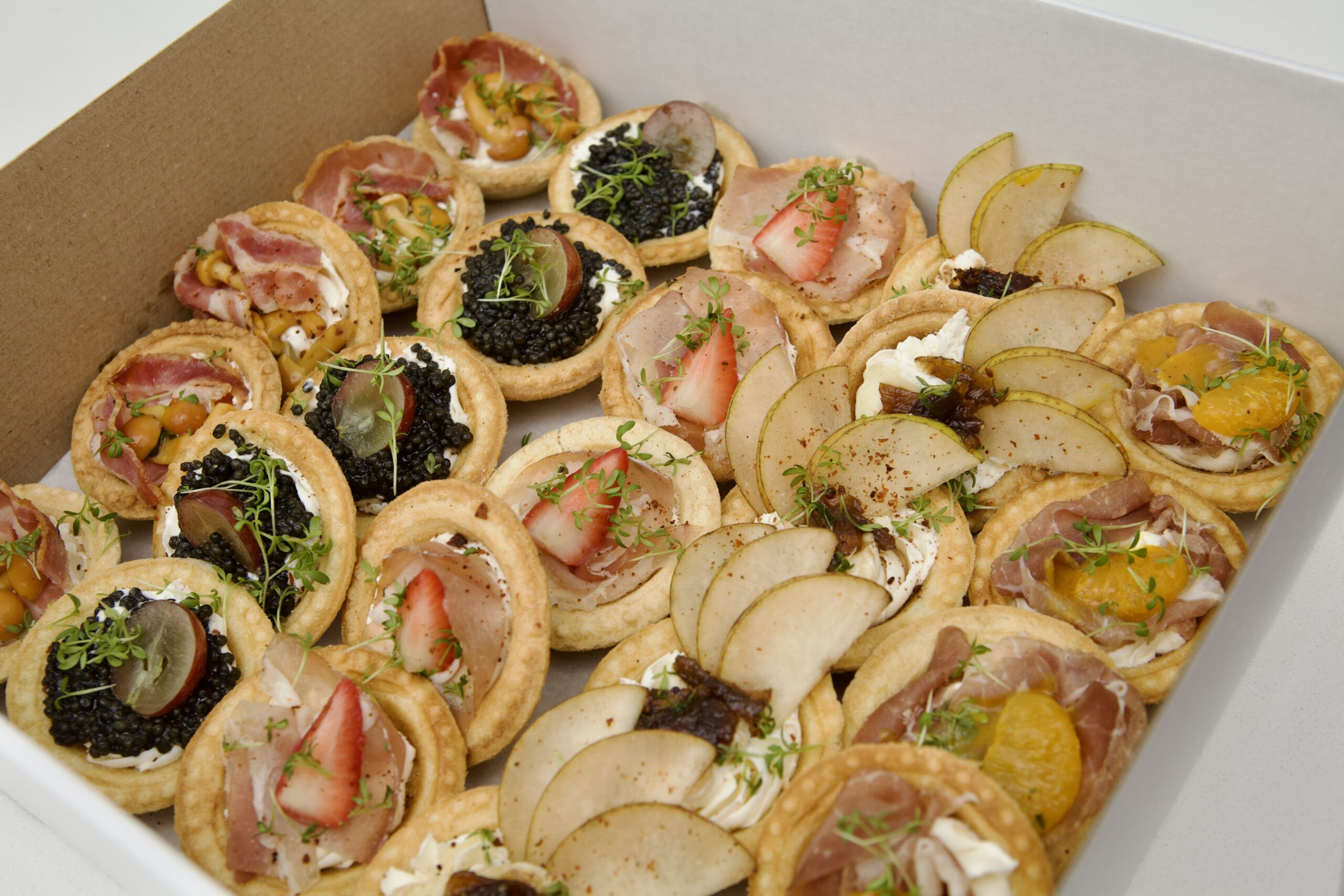 Тарталетка с нежной кремовой текстурой, черной икрой и виноградом – 5 шт