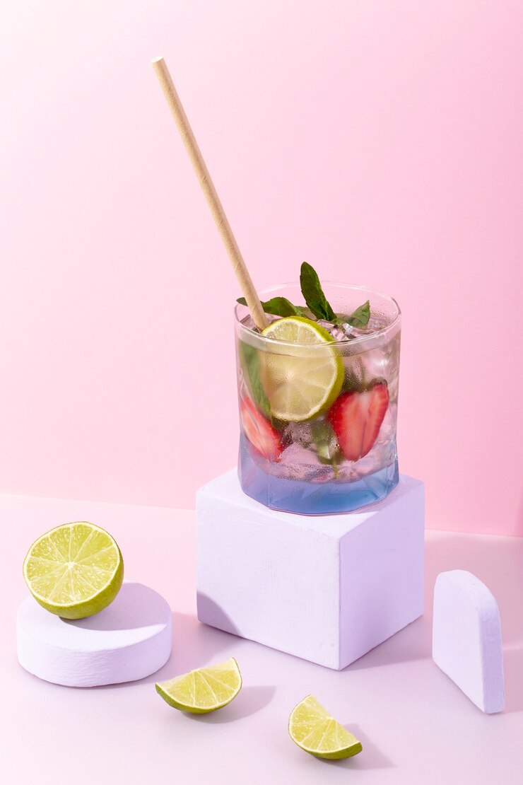 Лимонад “Клубничный мохито” — это искрящийся напиток, который подарит вам ощущение летнего вечера в каждом глотке. Сочетание сладкой клубники и прохладной мяты делает его идеальным выбором для освежения в теплую погоду.