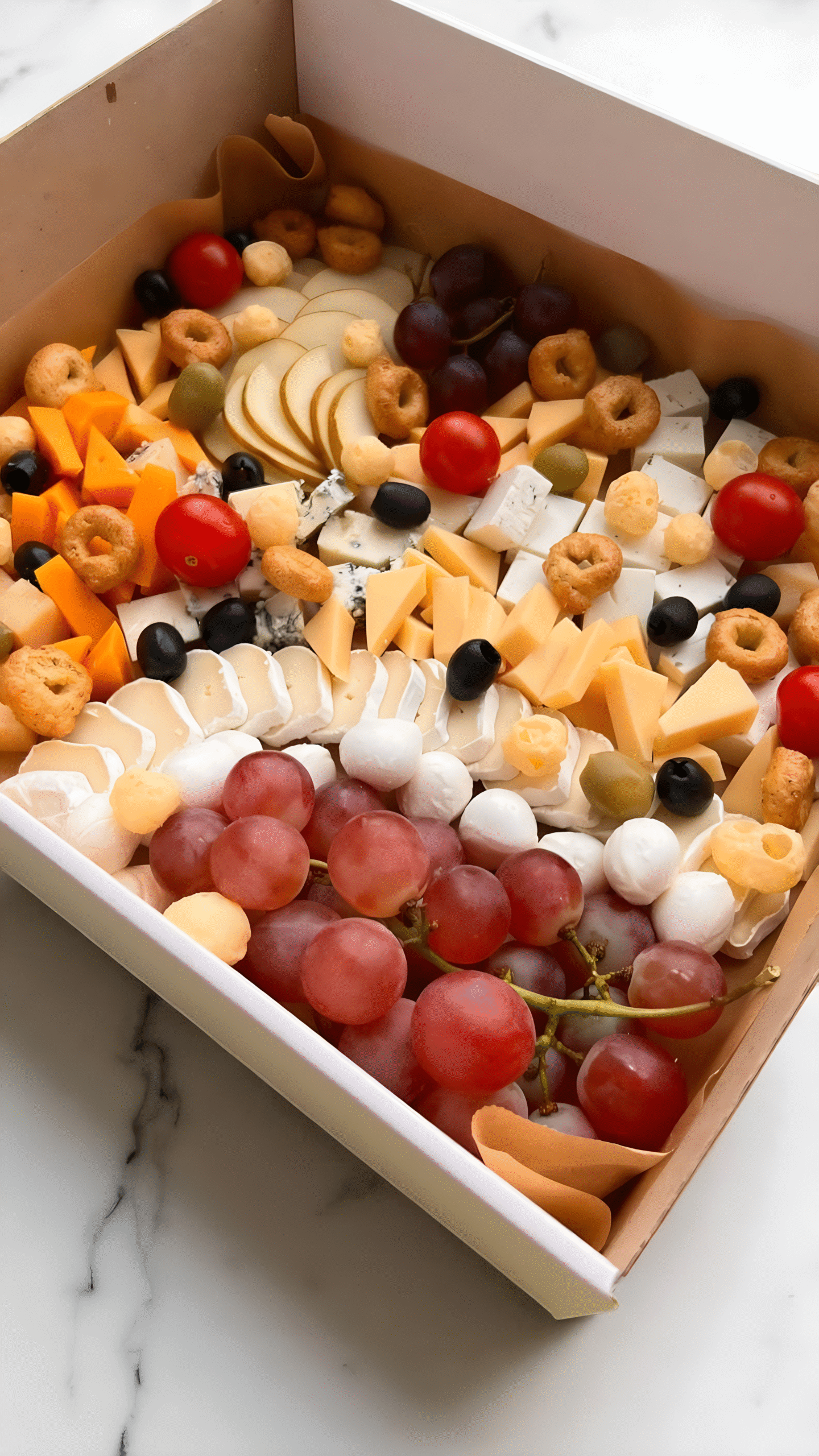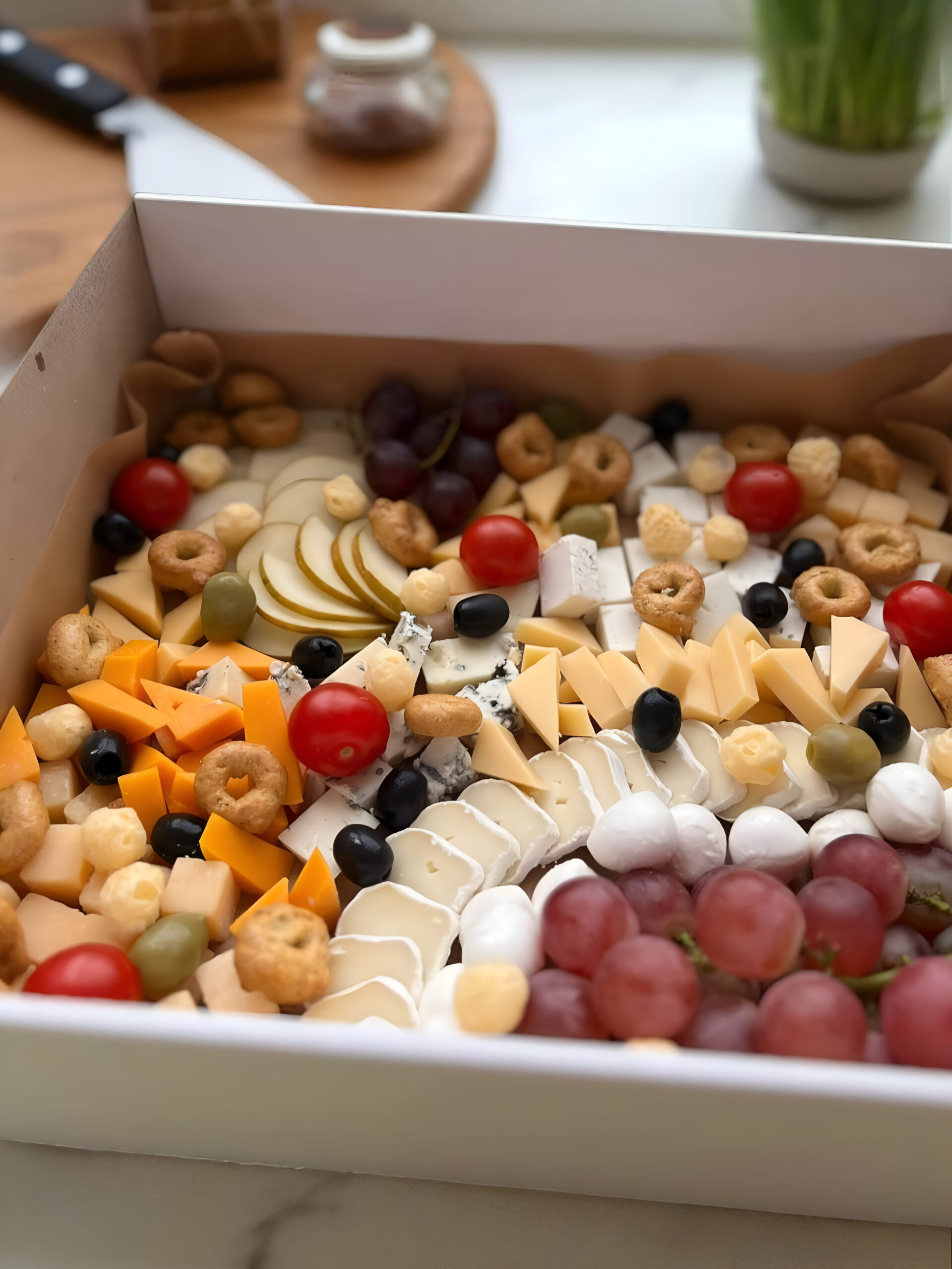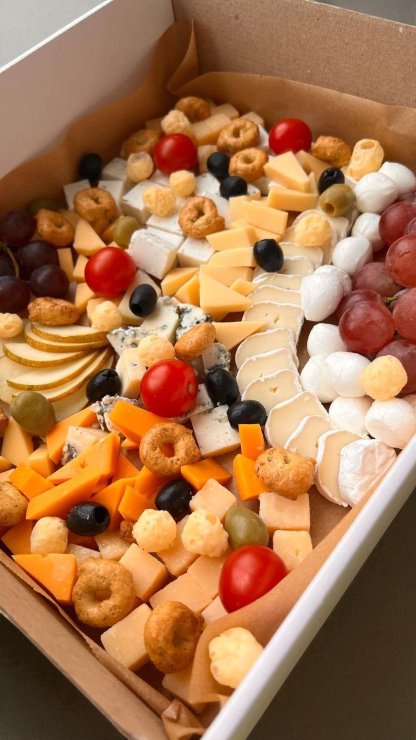 Подается с сухофруктами, крекерами и сезонными фруктами.